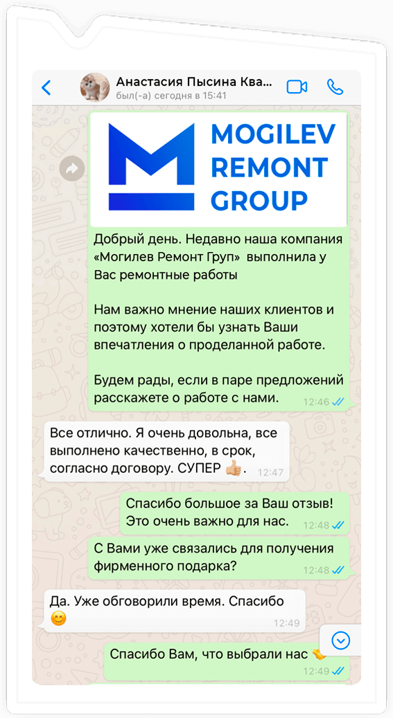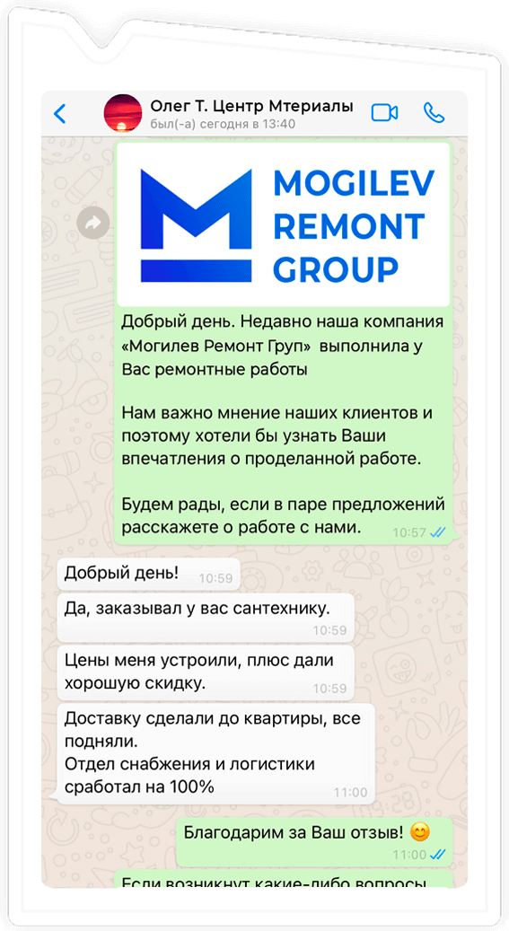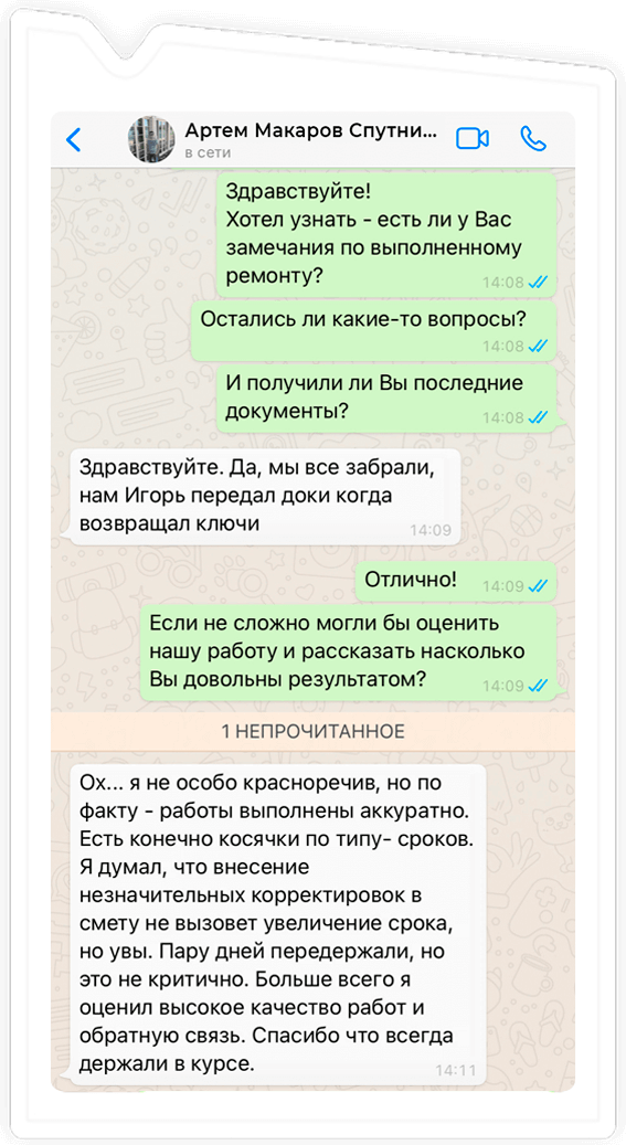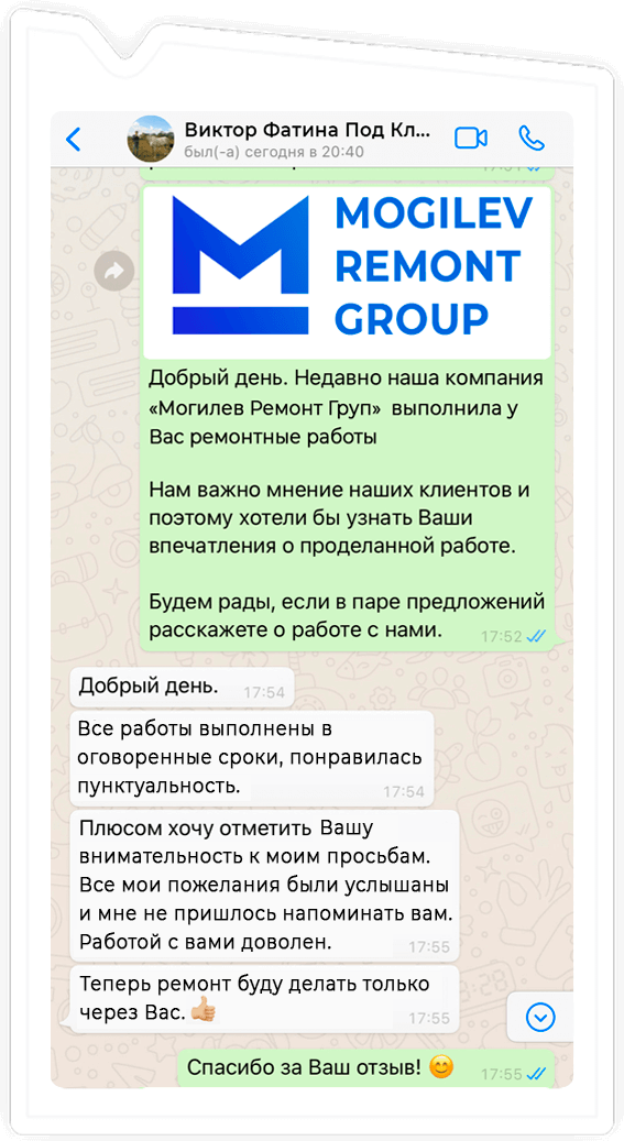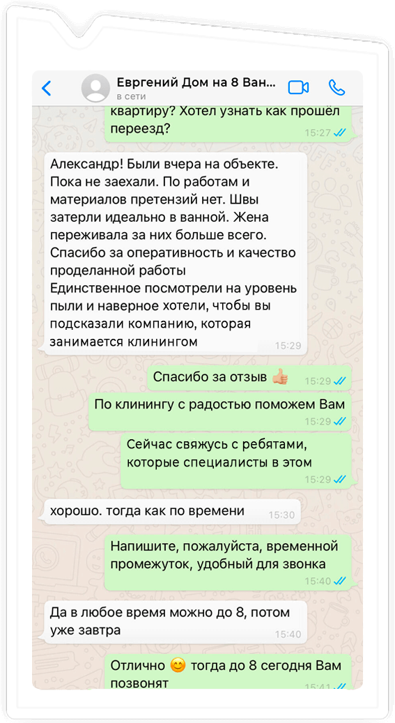 За долгие годы работы сотни клиентов, обращавшихся к нам, оставили положительные отзывы. Клиенты рассказывают о нас и делятся нашими контактами со своими родственниками друзьями и соседями. Благодаря этому мы завоевали репутацию надежной компании, которой можно доверить ремонт квартиры, коттеджа, частного дома, офиса.